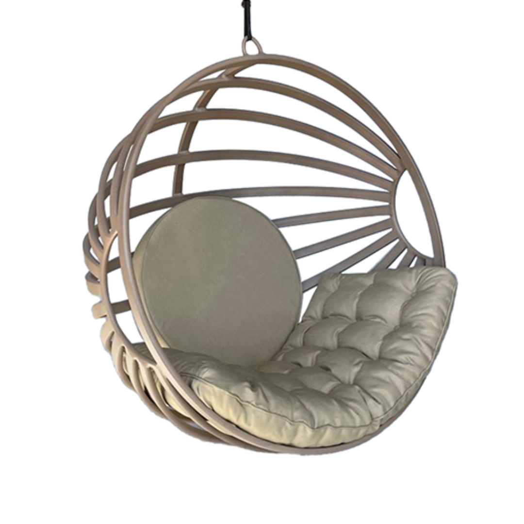 O Balanço Pérola destaca-se pelo seu design arredondado e acolhedor. Sua estrutura em alumínio garante leveza e alta resistência, enquanto o estofado com tecido hidrorepelente oferece conforto superior e praticidade, repelindo a água e facilitando a limpeza. Uma peça sofisticada, ideal para criar um refúgio de relaxamento em sua área externa.
