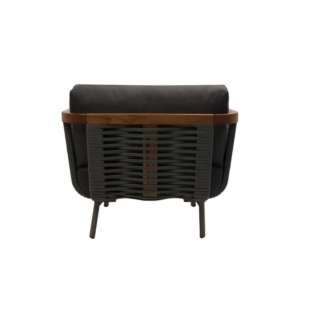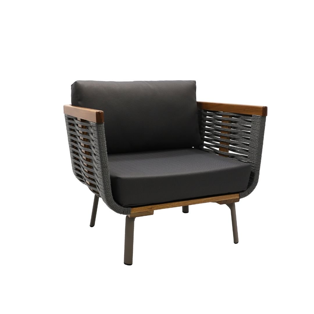 A Poltrona Chile é a expressão máxima do design contemporâneo que une a robustez dos elementos naturais à precisão dos detalhes metálicos. Sua estrutura é fabricada em madeira, garantindo uma estética calorosa e imponente, realçada por um minucioso revestimento artesanal em corda náutica. O grande diferencial desta peça reside nos detalhes em alumínio nas bases, que conferem um toque de modernidade industrial e sofisticação extra ao conjunto. Equipada com estofamento em tecido hidrorepelente, a Poltrona Chile é a escolha ideal para lounges e varandas gourmet que buscam um mobiliário com alma, conforto superior e durabilidade excepcional.